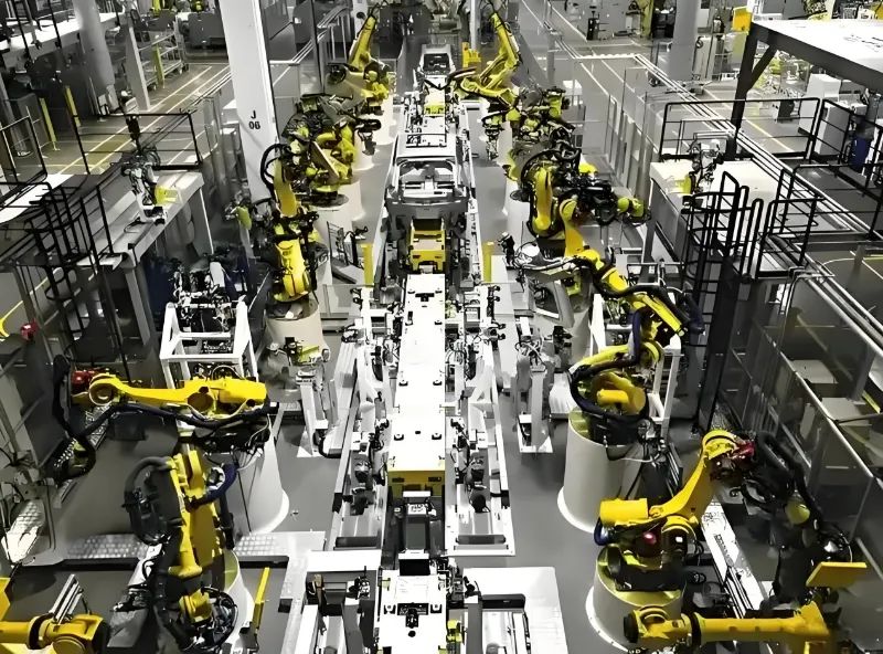 工厂内,超过1800台智能机器人实现冲焊涂总全面自动化与数字化。焊装线运用15种钢铝连接方式,298种具体组合工艺,对5714个连接点进行实时监控;涂装工艺通过AI技术重构大师级精致漆面,采用 “6C4B”喷涂工序,双拼色自动分色机器人将分色线精度控制在0.3毫米以内。
